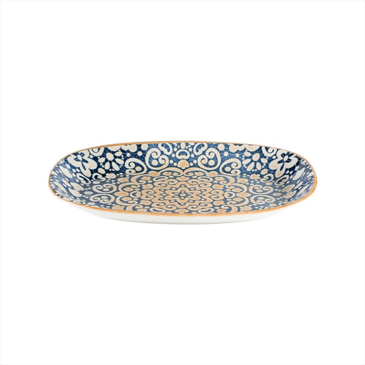 Turgla Vitrified Alhambra 9.5" x 5.5" x h:1.25" Oval Decorated Vitrified Platter - Case Pack: 12