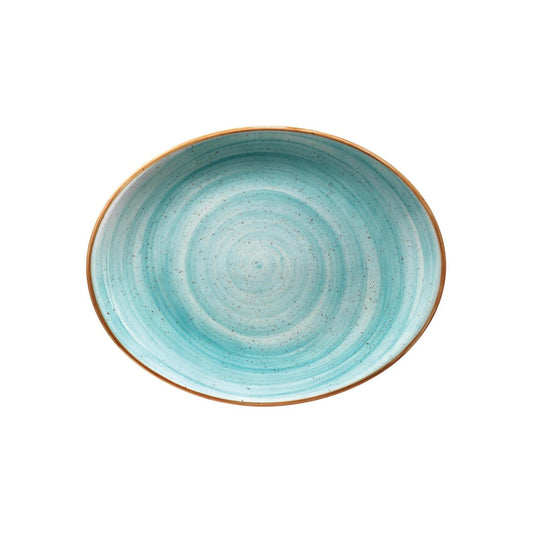 Turgla Vitrified Aqua 12.25" x 9.5" x h:1" Oval Blue Vitrified Platter - Case Pack: 6