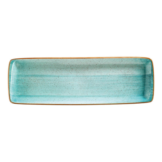 Turgla Vitrified Aqua 19" x 6.25" x h:1" Rectangular Blue Vitrified Platter - Case Pack: 6